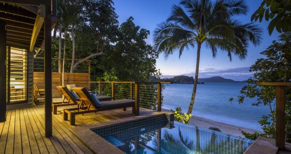 The sleeping level comprises a King Size bed and built-in robes and the living level offers contemporary lounge seating, LED TV, Ipod, work desk, tablet and bar with a pod espresso machine. The large outdoor deck features a private infinity edge plunge pool, daybed, outdoor shower and an alfresco dining setting.